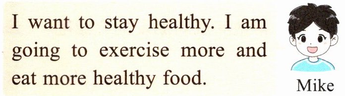 Mike I want to stay healthy. I am going to exercise more and eat more healthy food.