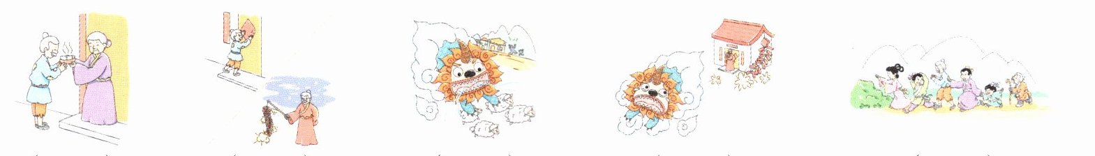 任务一:根据故事发展的顺序,用数字1~5给下列图片排序。