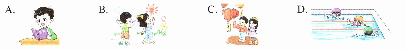 ( )2. How many clubs can you see? A. Three. B. Four. C. Five.