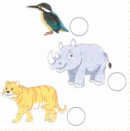 二 [武汉市] 选词填空,补全句子,并根据句子描述选出相符的动物,在对应的圆圈内画"√"。
