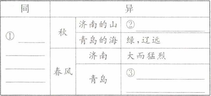 7. 济南和青岛两地的春秋同中有异,请你根据对文章的理解,加以概括。