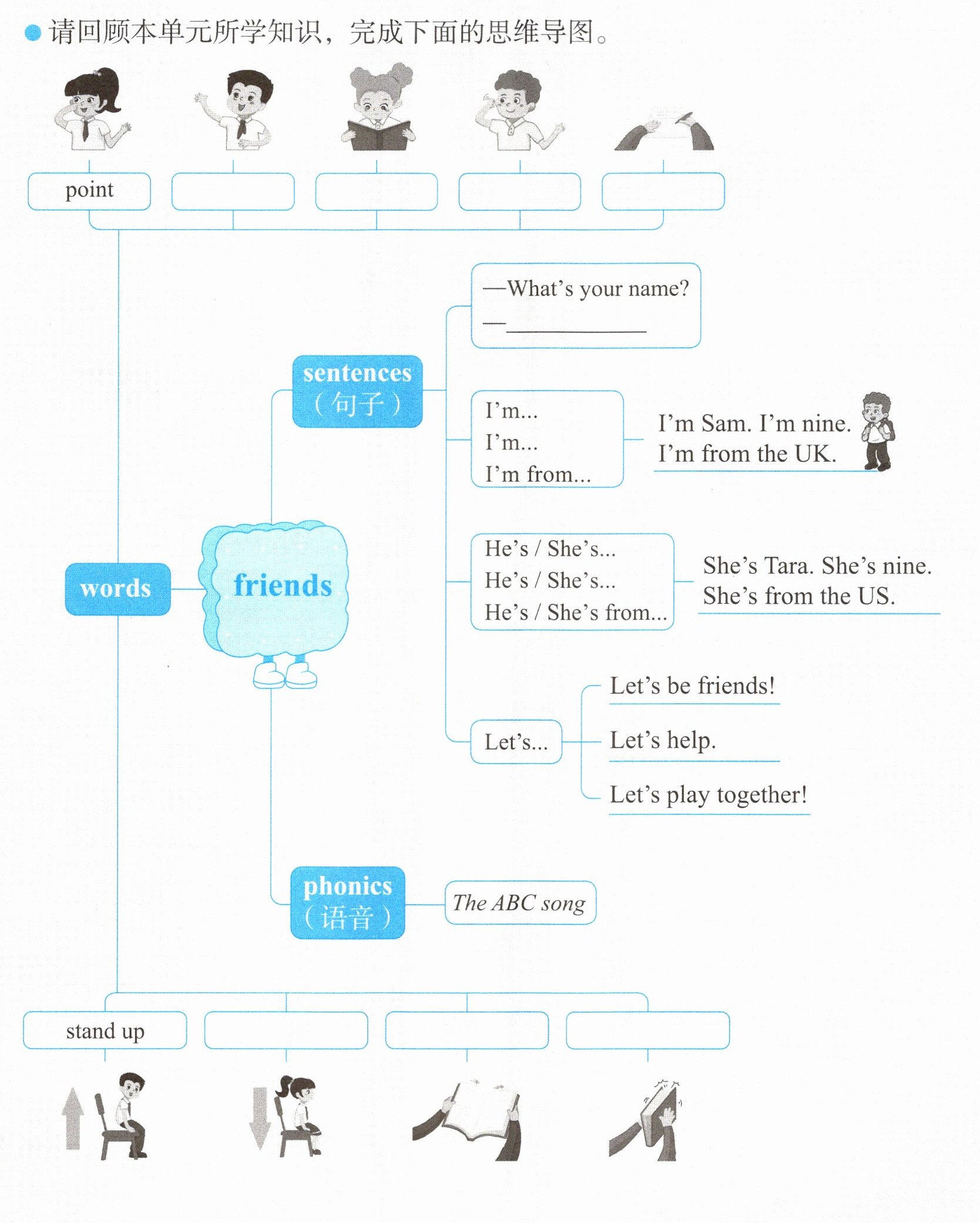 He’s / She’s... : (合理答案即可,如He’s Tom. He’s nine. He’s from China.)