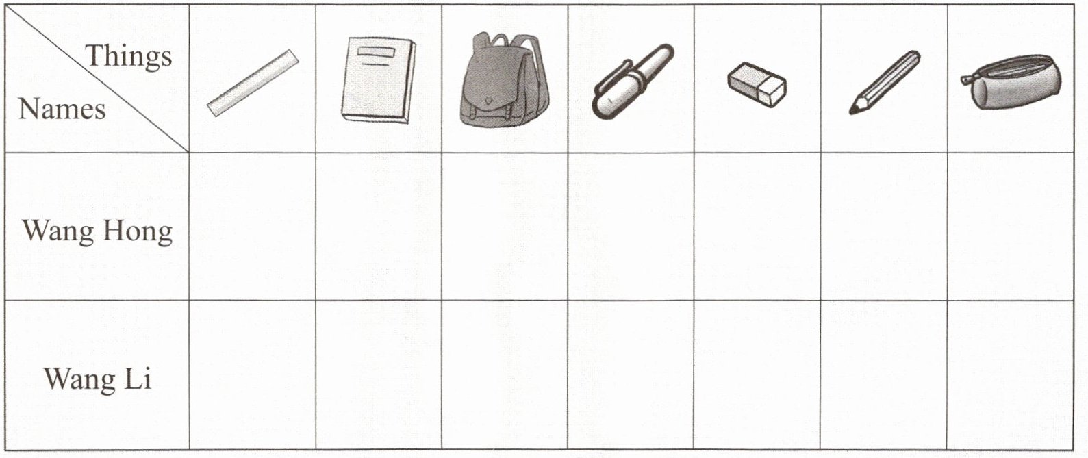 3 Listen and write “√”. 听录音,在人物与对应的物品方框中打“√”。