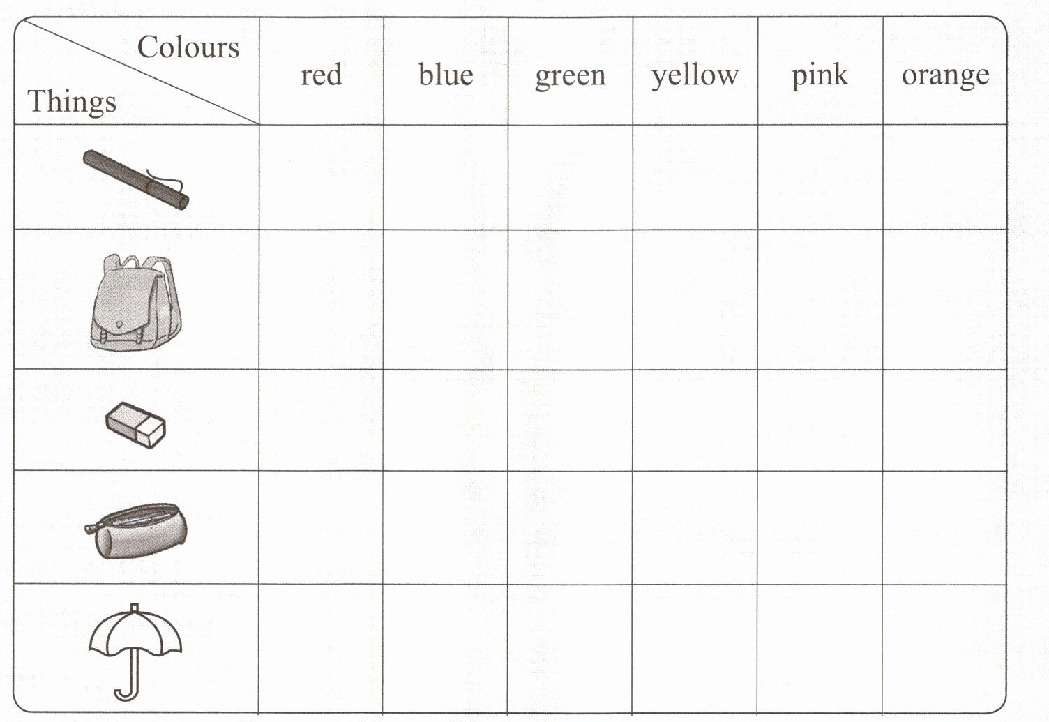 2. Listen and colour. 听录音,给下列物品涂颜色。
