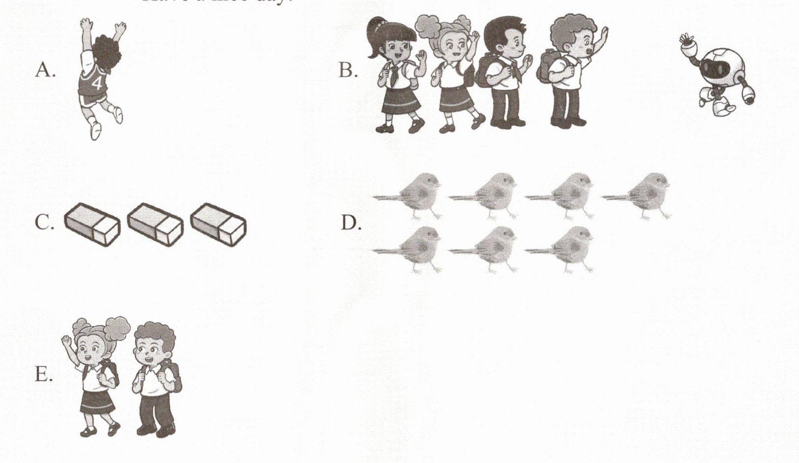 ) 4. —How many erasers?—Let me count. One, two, three! Three erasers!