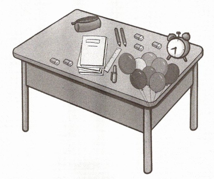 萨姆有很多东西。他有1. 八个气球。他有2. 五个橡皮。他有3. 两支铅笔和4. 三本书。并且他有5. 一个铅笔盒。