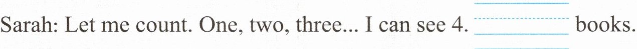 . How many books can you see?Sarah: Let me count. One, two, three... I can see 4.