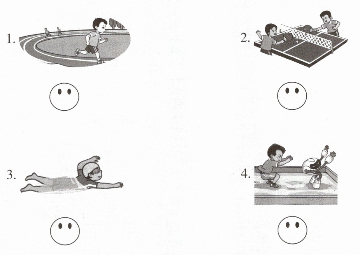 2 Listen and draw $\odot$ or $\otimes$. 听录音,在大明擅长的运动项目下画$\odot$,在大明不擅长的运动项目下画$\otimes$。