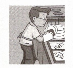 1. wash 2. sweep / clean; floor 3. clean; desk 4. water 5. pigs 6. cut; grass