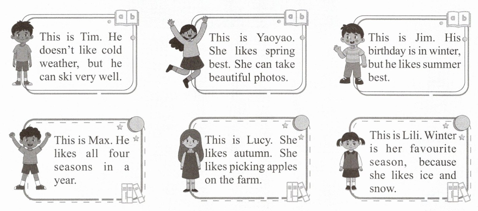 ) 5. Lili likes winter best. She likes ice and snow.