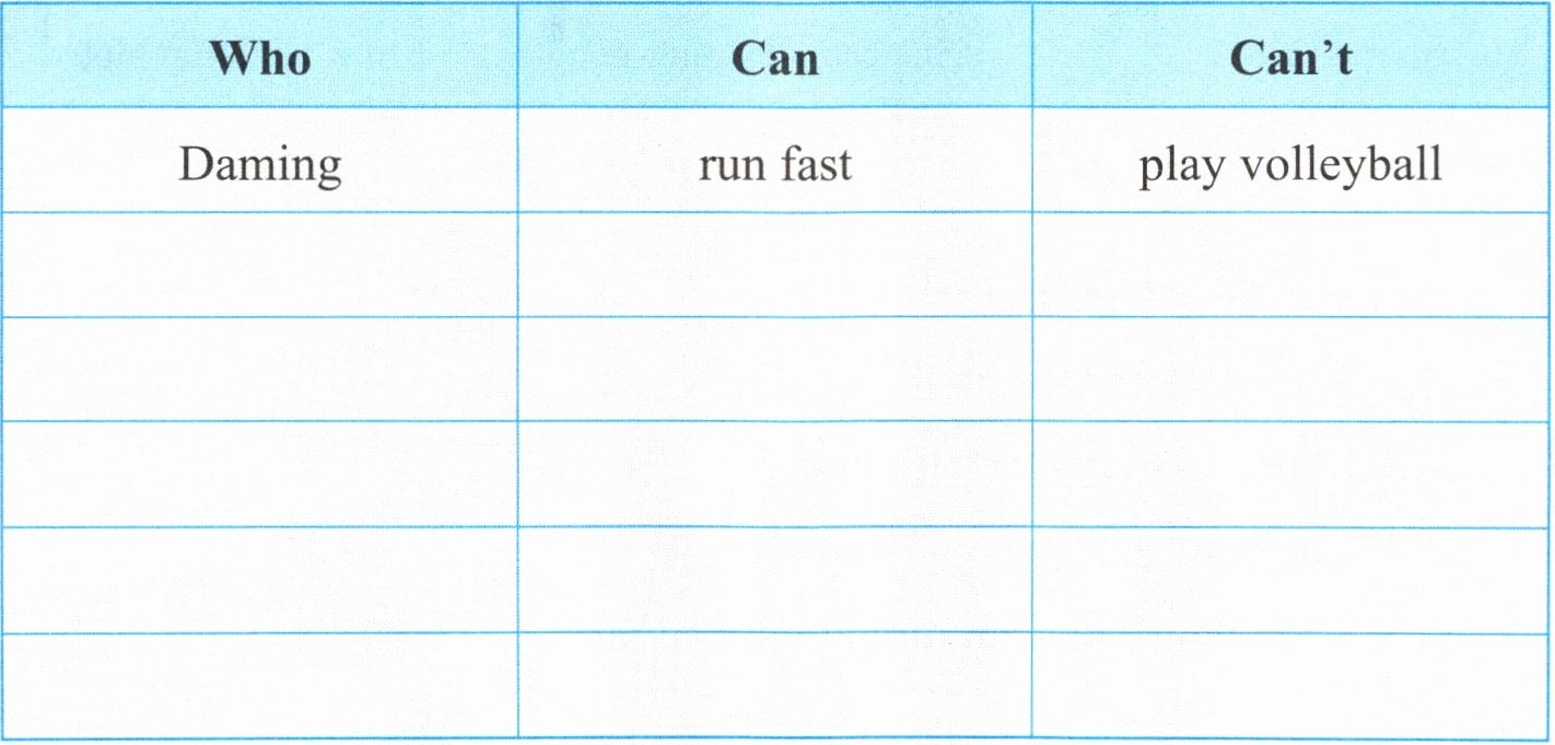 | Daming | run fast | play volleyball |