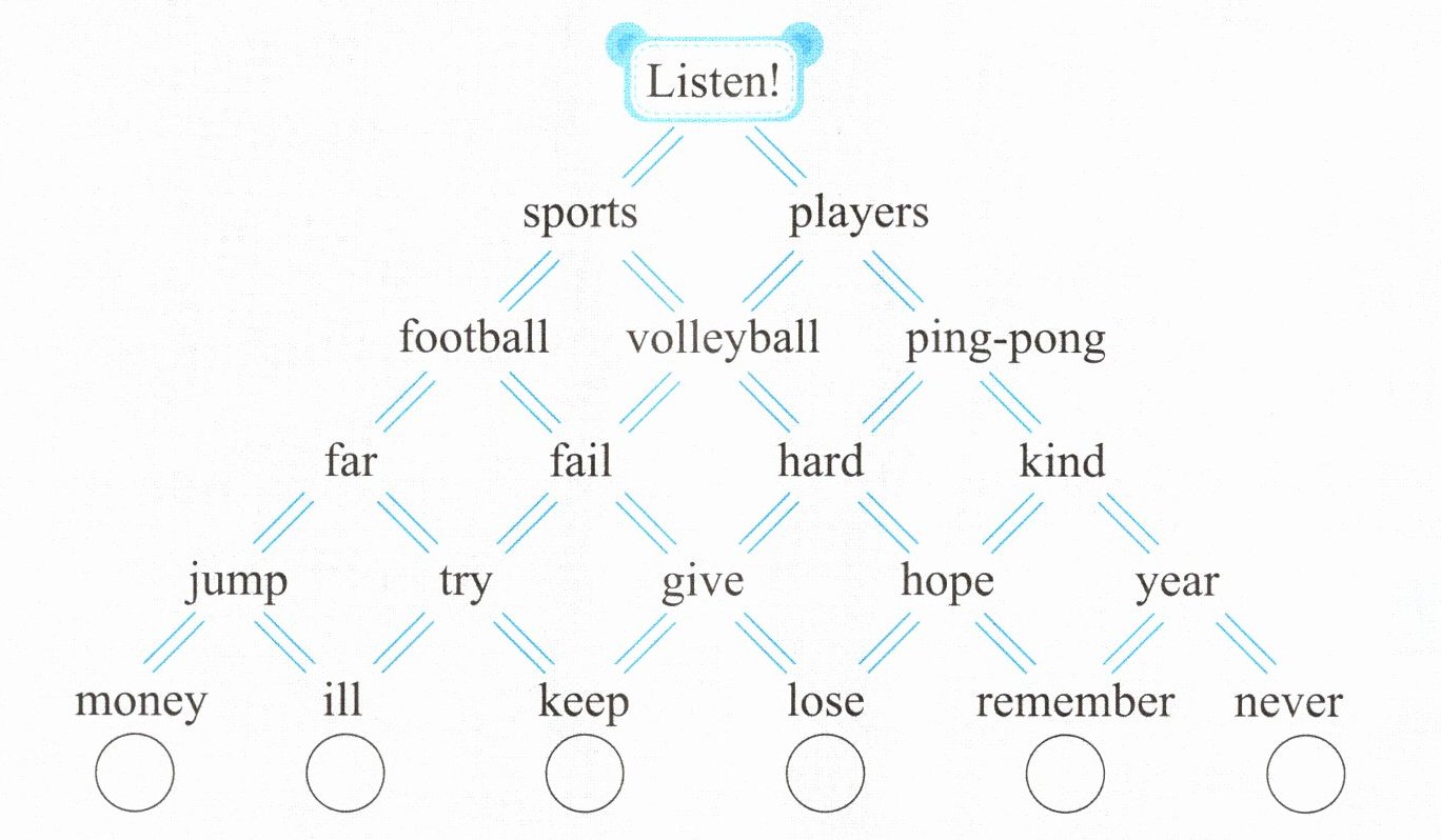 1. ping-pong 2. jump 3. swim 4. run