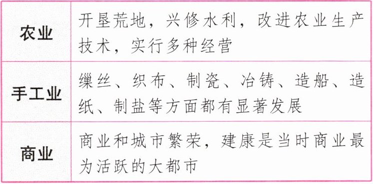 |手工业|缫丝、织布、制瓷、冶铸、造船、造纸、制盐等方面都有显著发展|