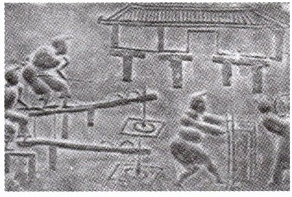 4. 下图所示为我国古代劳动者利用杠杆原理进行谷物加工的场景:左边3人扶在栏杆一头,借用身体下压的力量,启动杆头,达到舂米的效果。据此可知,东汉时期( )