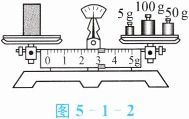 例2 使用托盘天平称量一物块的质量,所加砝码与游码位置如图5-1-2所示,则该物块的质量为