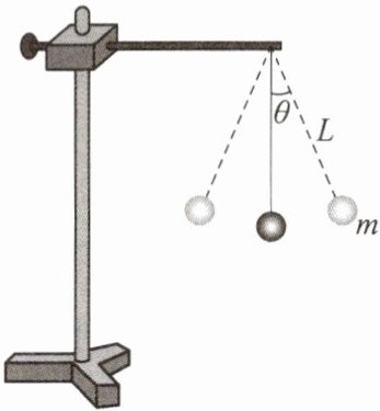 3. 图 1 - 4 - 2 所示是某同学探究“单摆摆动一次所需时间可能与摆的质量、摆线的长度、摆角有关”的实验(摆线和竖直方向的夹角$\theta$叫做摆角),实验的器材包括质量一定的小球$m$、长度不同的细线两根、秒表等。