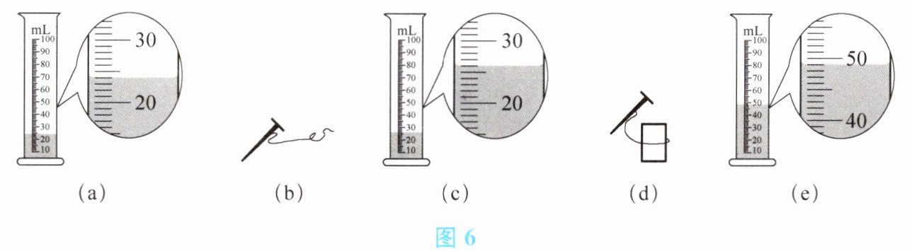 (1) 往量筒中倒入适量的水,如图6(a)所示,读出水的体积,$V_{1} = $