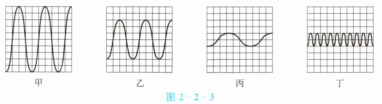 3. 图2-2-3所示是四个音叉发声时,利用同一示波器在相同设置下分别测到的波形,其中,音叉振动频率最高的是