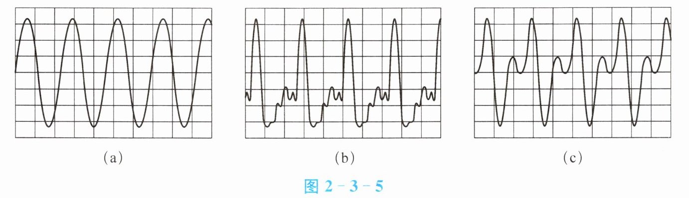 (选填“相同”或“不同”)的力拨动钢尺,可以探究响度与振幅的关系。接下来,小红拨动钢尺,通过示波器观察到声音的振动图像如图2-3-7所示,减小钢尺伸出桌边的长度,再次用同样大小的力拨动,则振动图像可能是图(c)