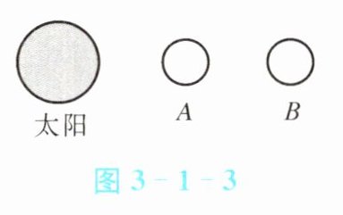 而形成的。如图3-1-3所示,发生月全食时太阳、地球、月球处在同一直线上,则地球在图中A