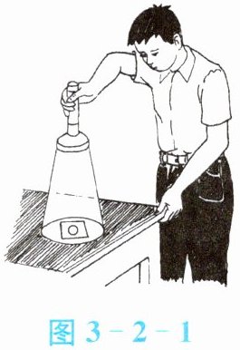 5. 晚上,在桌上铺一张白纸,把一块小平面镜平放在纸上,熄灭室内灯光,用手电筒正对着平面镜照射,如图3-2-1所示。从侧面看去(