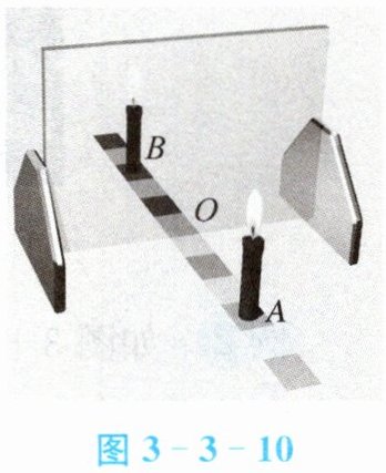 13. 小烨同学在做“观察平面镜成像”实验时,将一块玻璃板竖直架在一把直尺的上面,再取两段相同的蜡烛 $ A $ 和 $ B $ 一前一后竖放在直尺上,点燃玻璃板前的蜡烛 $ A $,进行观察,如图3-3-10所示。在此实验中: