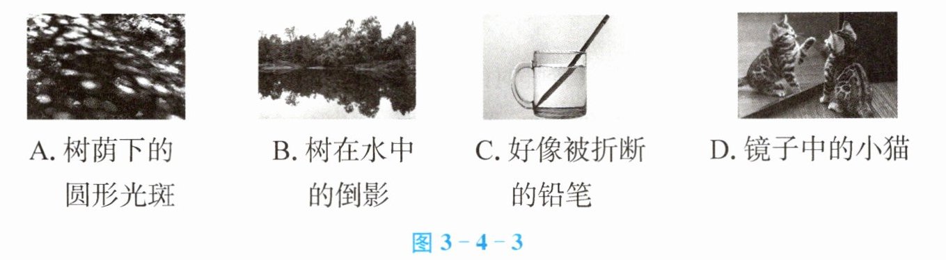 5. 如图3-4-3所示的四种现象中,由于光的折射而形成的是(