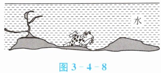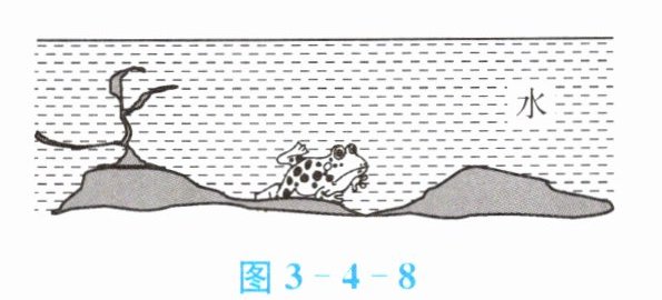 10. 小华在湖上乘船游玩时,发现水面下某处有一只青蛙,如图3-4-8所示,他用激光笔照射到了这只青蛙。