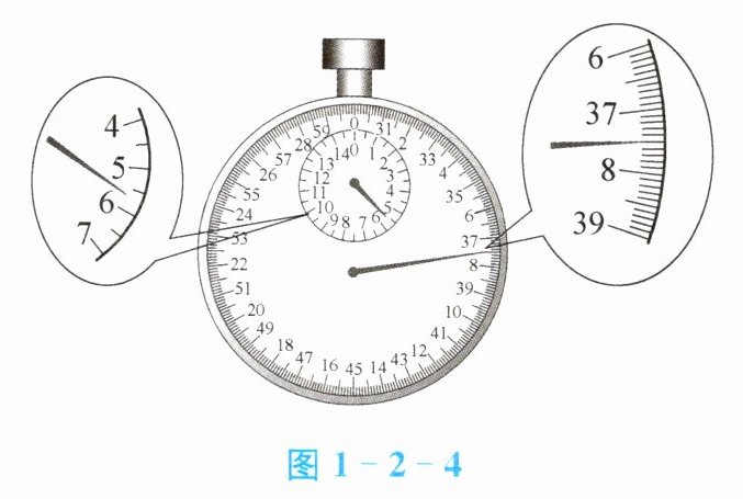 (1) 在测量时间时,要先观察秒表的分度值,图1 - 2 - 4所示秒表的分度值是