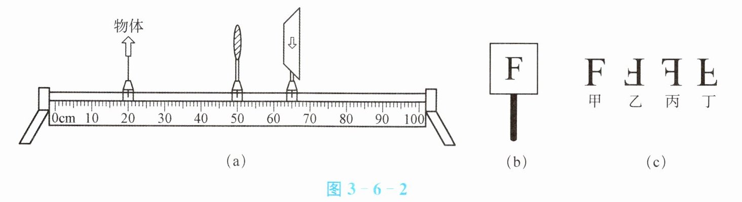 (4)小明用如图3-6-2(b)所示的LED发光灯制成的“F”字样的光源替换图3-6-2(a)中的光源,移动光屏又一次找到了清晰的像,从左向右观察光屏,该像可能是图3-6-2(c)中的