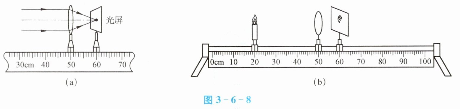 (1)将平行光正对凸透镜,移动光屏,直至光屏上形成一个最小、最亮的光斑,如图3-6-8(a)所示,该凸透镜的焦距为