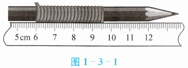 例 小慧家有一段零散的铜线,小慧想知道这段铜线的直径,采用了如下测量办法。她把这段铜线单层盘绕在一支铅笔上,形成一个铜线圈,再用一把刻度尺测量铜线圈缠绕的宽度,测量情况如图1-3-1所示。小慧所用刻度尺的分度值为