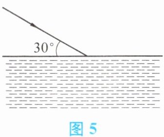 11. 一束光从空气斜射到某液面上发生反射和折射,入射光线与液面成 $30^{\circ}$ 角(图 5),反射光线与折射光线的夹角为 $83^{\circ}$,则反射角的大小为