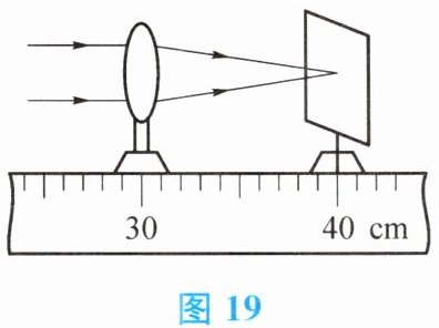 (1) 将凸透镜正对太阳光,在凸透镜的另一侧移动光屏直至屏上呈现出最小、最亮的光斑(图 19),则此凸透镜焦距是