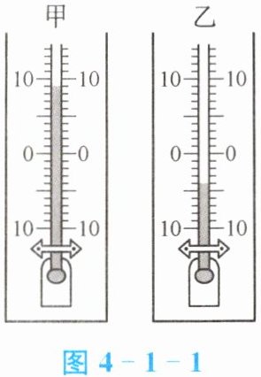例 图4 - 1 - 1中,甲温度计的示数为9$^{\circ}C$,乙温度计的示数为-4$^{\circ}C$。