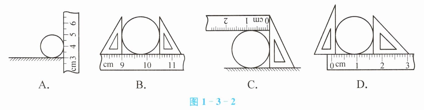 1. 在如图1-3-2所示的四种测量圆柱体直径的方法中,正确的是(