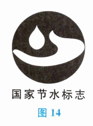 成小冰晶,也有的小水滴凝固成了小冰晶,它们共同形成了云。云被风吹到陆地的上空,在一定条件下,这些水滴和冰晶降落到大地上。如此,陆地上的江河、湖泊、湿地才得以形成,它们是陆地生命的淡水源。由于陆地上的淡水也会因日晒而减少,或通过滔滔江流回归大海,地球可供陆地生命使用的淡水量不到地球总水量的千分之三,因此,陆地上的淡水资源量是很紧缺的。图14所示是我国节水标志,右下表是近几年“世界水日”的宣传主题,请你就节水和减少水污染各提出两条合理化建议:生活污水净化后循环利用 工业污水净化后达标排放