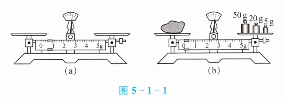 。(2)调节天平横梁平衡后,将物体放在左盘中,用镊子由大到小在右盘中加减砝码,当放入5g的砝码时,指针偏向分度盘的右侧,如图5-1-1(b)所示,则接下来的操作是: