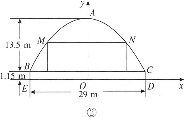 设拱形抛物线的解析式为y=ax²+c,则$\begin{cases}14.65 = a·0² + c\\1.15 = a·(\frac{29}{2})² + c\end{cases}$