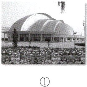 11. 某大剧场的上部为能够旋转的拱形钢结构,并且具有开启、闭合功能,如图①所示.舞台顶部横剖面拱形可近似看作抛物线的一部分,其中舞台高度为$1.15m$,台口高度为$13.5m$,台口宽度为$29m$,如图②所示.以$ED所在直线为x$轴,过拱顶点$A且垂直于ED的直线为y$轴,建立平面直角坐标系.