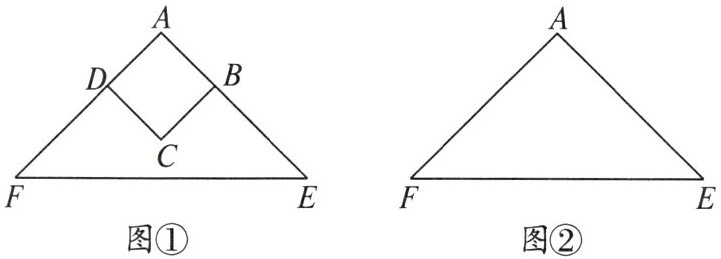 10. 如图①,正方形 $ ABCD $ 的边 $ AB $,$ AD $ 分别在等腰直角三角形 $ AEF $ 的腰 $ AE $,$ AF $ 上,点 $ C $ 在 $ \triangle AEF $ 内,则有 $ DF = BE $(不必证明)。将正方形 $ ABCD $ 绕点 $ A $ 逆时针旋转一定角度 $ \alpha (0^{\circ} \lt \alpha \lt 90^{\circ}) $ 后,连接 $ BE $,$ DF $。请在图②中用实线补全图形,这时 $ DF = BE $ 还成立吗?请说明理由。