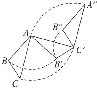 (2)以点 $ C' $ 为旋转中心,顺时针旋转(1)问中相同的角度,那么线段 $ AC $ 与 $ A''C' $,$ BC $ 与 $ B''C' $,$ AB $ 与 $ A''B'' $ 有怎样的关系?$ B'C' $ 与 $ B''C' $ 的位置关系呢?