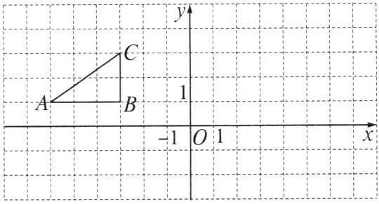 ★9. 如图,方格纸中的每个小方格都是边长为 $ 1 $ 个单位的正方形,$ \mathrm { Rt } \triangle ABC $ 的顶点均在格点上,在建立平面直角坐标系后,点 $ A $ 的坐标为 $ ( - 6,1 ) $,点 $ B $ 的坐标为 $ ( - 3,1 ) $,点 $ C $ 的坐标为 $ ( - 3,3 ) $。