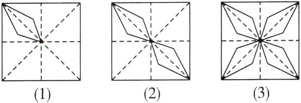 8. 小亮设计地板砖的图案过程如图所示,由图(1)是如何得到图(2)的?由图(2)是如何得到图(3)的?