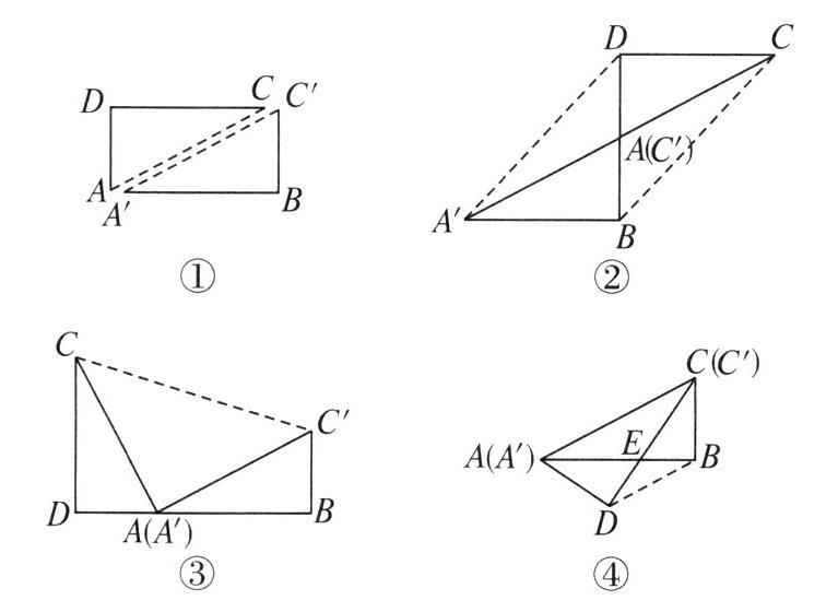 16. 如图①,有一张矩形纸片,将它沿对角线 $ AC $ 剪开,得到 $ \triangle ACD $ 和 $ \triangle A'BC' $。