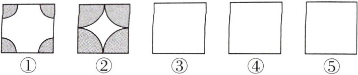 15. 为创建绿色校园,学校决定对一块正方形的空地进行种植花草,现向学生征集设计图案。图案要求只能用圆弧在正方形内加以设计,使正方形和所画的圆弧构成图案,种植花草部分用阴影表示。请你运用平移、旋转、轴对称等知识,在图③、图④、图⑤中画出三种不同的设计图案(温馨提示:在两个图案中,只有半径变化而圆心不变的图案属于同一种,例如:图①、图②只能算一种)。