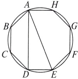 4. 如图,圆内接正八边形$ABCDEFGH$,若$\triangle ADE$的面积为10,则正八边形$ABCDEFGH$的面积为