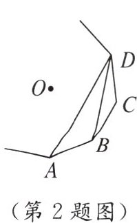 2. 如图,$A$,$B$,$C$,$D$为一个正多边形的顶点,$O$为正多边形的中心,若$\angle ADB = 18^{\circ}$,则这个正多边形的边数为