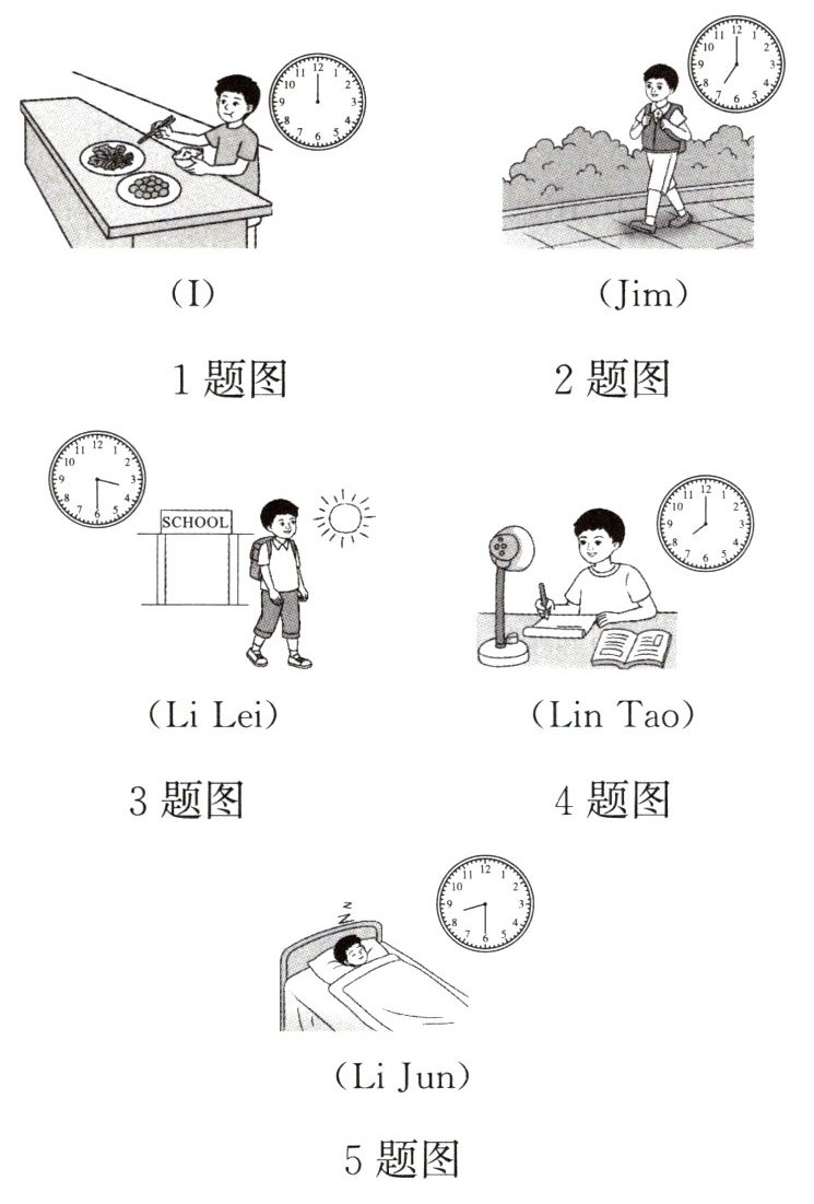 5. Li Jun usually goes to bed at eight thirty.