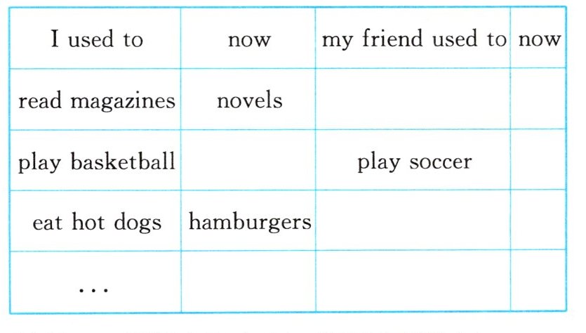 示例:I used to read magazines, but now I read novels. My friend used to... but now he/she...______